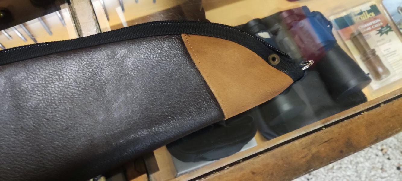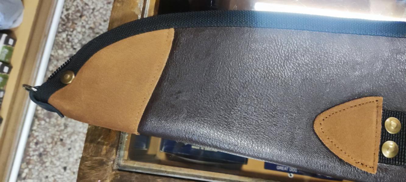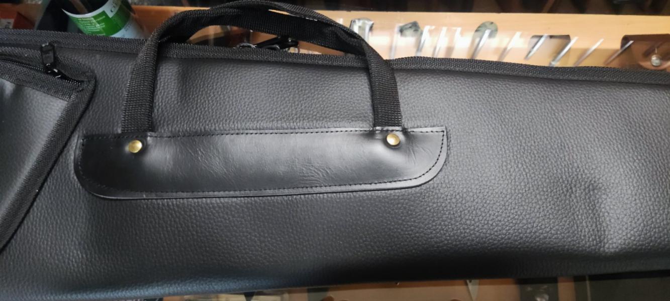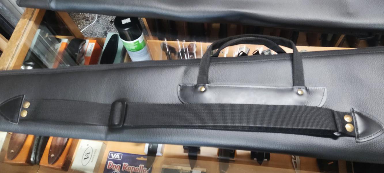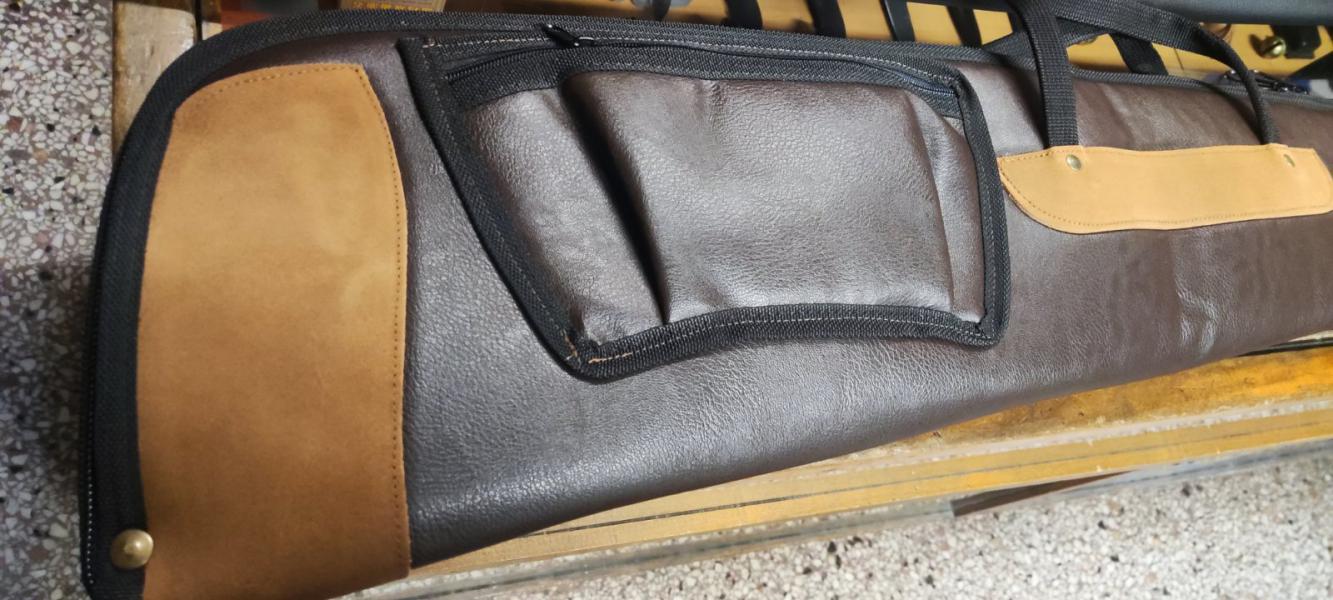 Θήκη για καραμπίνα ή δίκανο , απο δερματίνη. Με τσέπη , αορτήρα και διπλό φερμουάρ για να κλειδώνει. Με δερμάτινα επιθέματα. Ανθεκτική και πανέμορφη. Διαθέσιμη για όλα τα μήκη καννών. Σε μαύρο και καφέ χρώμα.